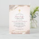 Den här elegantens första gemensamma inbjudan innehåller en fantastisk rosa agate och faux guld glitter. Denna rosa inbjudan accentueras med en liten text i skript guld kor och elegant ro guld och är perfekt för en flickas första heliga-gemenskap.