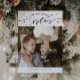Minimal- och elegant-kort för nyfödda som firar sin första jul tillsammans som make och hustru med texten "vår första gifta jul" med punkter och hjärtan. Bakgrunden är vit.