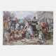 Vintage finkonst Den första thanksgiving av Jean Leon Gerome Ferris, c. 1912 visar pilgrimsfamiljer med indianer från Wampanoag som firar Thanksgiving med kalkon och majs.