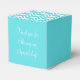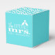 Lägg till en modern möhippa för chic till din speciella dag! Den här lilla söt-affären finns i ett populärt robinägg eller akva, tiffany blue färg med orden "The Future Mrs" med ditt gifta namn! Två love birds ett hjärta. Text på baksidan "Tack för att du delar min speciella dag" Llocket har ett schevron mönster som gör att den här möhippan i eleganten föredrar perfekt! Gör en underbar "tack för presentlåda" för dina brudar! Anpassa med brudtärnorna namn på baksidan av lådan. Glöm inte att lägga till en för mor och mor att vara! Grattisar!