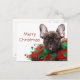Den franska bulldoggen som ha på sig jul, förser helg vykort