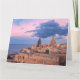 Maltas text med eftertanke som består av solnedgången över den gamla staden Valletta och hamnen i Valletta, Malta ...