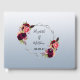 Ett trendig Bohemian boho stil Guest Bok för bröllop. Dekorerad med vattenfärgat ro i burgundi och rosa. Med faux silver geometric ram. Trendigets dammiga blå övertoning som bakgrund. Mallar för namn och datum. Framsidan av namn är skriven med ett modernt och trendig handskript i stil. Svart färgad brev.