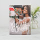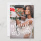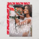 Denna design presenterar en fullt blöder fotoet med en modern borstad stilsortsläsning "att gifta sig & ljust", perfekten för par som firar deras första jul som nygift person! Den tillbaka designen presenterar en ljus röd bärbakgrund med helgdaggrenar. Bakgrundsfärg kan ändras, genom att klicka på skräddarsy, knäppas.