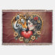 Kärnan i den gömt vildmarken, en stor tiger och en kvinnas profil blandas på ett konstgjort sätt. Båda motiven är inbäddade i en elegant, hjärtformad ram, som undervärderar den romantiska stämningen. Ram är rikt dekorerat med känsliga blommönster som harmoniskt vind runt och ger det en lekfull, fantasifull beröring. Blommorna är ett ljust rött hjärta som symboliserar kärlek och passion.