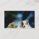 Den gula valpen med bruntöron tittar över järnfen visitkort
