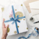 Den guld- Glam Bokeh konfettin pricker Presentpapper