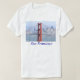 Det norr torn av den guld- grinden överbryggar med San Francisco i bakgrunden