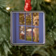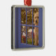 Den guld- klottervalpen tittar ut den glass dörren julgransprydnad metall