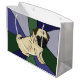 Den gulliga gåvan för mopsvalphunden hänger lös