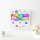 Den gulliga tecknaden fäster ihop fyrkantig klocka