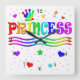 Tecknadtext fäster ihop konst med ordprincessen i stora färgrika brev som omges av hjärtor, stjärnor, banderoller som, är vinkara och en krona! En flickaktigtdesign med en regnbåge av färger!