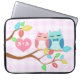 den gulliga tecknadvektorugglan kopplar ihop med laptop fodral