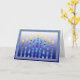 En modern illustrerad framställning av de Hanukkah menorastearinljusen. Blåttvit och mång- färg med verseinsida. "Önska dig en jätteglada Hanukkah".