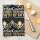 För in en liten gudomlig styrka och andlig nåd i ditt kök med den här vackert designade kökshandduken. Den kraftfulla frasen "Guardian, Defender of Faith" i fet, plågad metallisk guld, ett budskap som symboliserar tillit, visdom och inre fred. En fin men slående illustration av en ängels hand med ett strålande ljussvärd. En försiktig påminnelse om det utlovade skyddet av Gud i Psalms 34:7