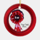 Denna härliga mors dagprydnad presenterar ett härligt rött 1st ställeband med en anpassade, meddelandet som "för din text här" på prydnad beklär. Om du inte önskar att skräddarsy, ta precis bort ord, "som din text här" i "skräddarsy den" delar upp av produktutnämningen. Prydnadbaksida presenterar en mycket gullig son, erbjudande blommor och meddelandet "bäst mamma för världar". Var säker att se våra andra produkter att matcha denna design, inklusive returetiketter, portofrimärken, klistermärkear, kökmagneter, halsband, kaffe koppar, underlägg och mer!