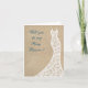 En söt, vintagesnörebröllopsklänningen på en illustrerad strandsandbakgrund och gullig sjöstjärna två, betonar detta bröllopkort, som frågar, "ska dig är min ringbärare" i aquablåtttyp. Detta kort har en strandlook som är elegant och flott.