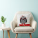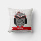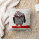 En kudde som presenterar en illustration av en grått- och svartuggla med en houndstoothbuk och en röd fot. Ugglan ha på sig en röd och svart fascinatorhatt och en röd kattögasolglasögon. Personifiera med ditt namn. Motsatssidan är houndstooth.