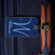 Den initiala blåttmonogramen skrivar bagagemärkren bagagebricka