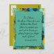 Blått, grönt, gult-färgat kristet bibelvykort med Jeremiah 29:11 tryckt på framsidan: "För jag känner till de planer jag har för dig" förklarar LORD, "planerar att blomstra dig och inte skada dig, planerar för ge som du hoppas på och en framtid".