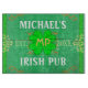 Skapa din egna beställnings- irländska design för skärbrädan för pubhempuben genom att använda denna mall. Designen göras för att se likt gammalt grönt trä med överflöd av vintagekrusidullar skuggar in av grönt, vit, orangen och guld. Det finns också fem shamrocks/klöver. Personifiera med ditt egna namn, initialer/monogram, och året var din bryggeri, pub eller Irland-themed mangrotta etablerade.