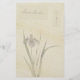 Är botanisk konst för härlig asiatisk vintage av Irisblommor under fauxrispapper på denna brevpapper.