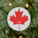 Kanadensisk lönnlöv i röda och vitlooks som, om vintersnön har stupat över den. Du kan personifiera denna prydnad, genom att skräddarsy datera på bekläda och baksidaen. Visa den för annandag som väl!