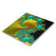 Ett driftigt keramiskt belägger med tegel designen som kallas ett fractalmönster i slå guld och aqua.