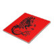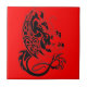 Detta röda keramiskt belägger med tegel med en drakedesign är en unik dekoration för varje bord. Det kan också inramas och användas som en väggdekoration.