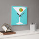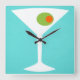 Denna klassikerfilmMartini vägg tar tid på särdrag en turkosbakgrund och vitsilhouetten av ett martini exponeringsglas. Insida exponeringsglaset är en härlig grön oliv med en orange pimento. Denna är en rolig vägg tar tid på för alla som önskar att de var ett tecken i en klassikerfilm. Behaga, skakat inte rört!