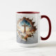 Det här inspirerande kaffet mugg har en dramatisk 3D-stil-utformning av en sprucken vägg som avslöjar ett strålande kor som lyfts upp av ett himmelskt himmel. Omgiven av moln och blommor symboliserar bilden hopp, tro och återuppståndelse. Det djupa röda insida och skött på ett vackert sätt kompletterar scenen i andlig, skapar det en meningsfull gåva eller en daglig påminnelse om tro.