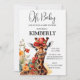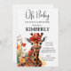 Bilden visar en söt giraff med ett lekfullt uttryck, omgiven av ett elegant arrangemang av färgglada blommor. Giraffens långa hals sträcker sig graciöst mot blommorna och skapar en charmig och lugn scen som visar naturens skönhet och djurets milda närvaro.