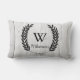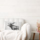 Den specificerade älgen skissar på en vit, tvättade som wood plankor skrivar ut på beklädasidan av kudde. Baken av kudde presenterar en svart lagrarkranram som innehåller ditt primat av det personligmonogrambrev och efternamn i svart text.