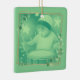 Ornamenten är dekorerad med en bild av den lilla trummans pojke i skuggor av grönt med guld gräns. Bilden finns på båda sidor om dekorationen. Sång, "Little Drummer Boy", inspirerade mig att skapa bilden.