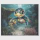 Den lilla havssköldpaddan som utforskar med sin vän. Hennes stora, ljusa ögon är fullt av nyfikenhet och uttrycksförmåga, skapar hennes toppen förtjusande. Hennes huvud är ljus gult och runda, ge henne en glad och varm ansikte. Med ett kärleksfullt leende simmor hon direkt mot tittaren. Hela sak verkar vara en lycklig, en magisk fullt under vattnet i vänskap och äventyr.