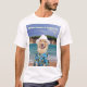 En skjorta med ett 90 pund. gul lab i en hawaiansk skjorta, på en tropisk strand. Du kan skräddarsy texten eller ta den bort. Du kunde ta bort den lösa hängningen undertecknar, om du önskar. Strandbakgrunden är en publicdomainpicture.