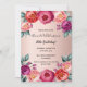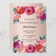 Ett inbjudningskort för elegant för en 50:e (eller någon ålder) födelsedagsfest. Med contemporary rosa, lila och färgad vid ro, vattenfärgade blommor, blommigtar som guld. En övertoningsbakgrund för chic ro guld. Namn är skrivet med stil-skript i svart skrift.