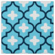 Tyg i en marockansk klassiker belägger med tegel mönster av i lager arabiskafris formar, i mjuka himmelblått som betonas med vit och gränsas i mörka indigoblå blått