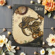 Den mekaniska av havsångfisk. Stampunk stil kännetecknas av en skarp svart och guld. Fisken omges av växlar och bubblor, vilket kontrasterar mot en texturerad, åldras parschmentbakgrund. Bildhörnen är inramade med mörk, metall, perforerat material och sfärer. Det totala estetiska är en blandning av mekaniskt och organiskt inslag, som skapar en fantasi.