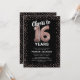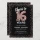 Elegant 16:e födelsedagsfest inbjudan med en snyggt svart bakgrund som kan ändras till vilken färg som helst, ro guld som helst glitter, sexton ro guld hellium-ballonger och en modern 16:e födelsedagstextmall som är lätt att anpassa.