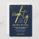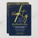 En underbar modern 80:e födelsedagsfest inbjudan. Den här fantastiska inbjudan har guld-effekttypografi på en marin blå bakgrund med guld konetti. Enkel att anpassa med din egen födelsedagsfest firande-information.