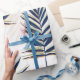 Den moderna blå Handflatan-Löven, Guld-streck, vit Presentpapper