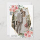 Snyggt, modernt fototack för att du får kort till bröllop. Faux guld geometric ram med blommor av foto/bild och vattenfärg, dammiga rosa ros. Tillbaka har tack för kalligrafi och meddelande/anteckning med brud och groom namn med datum.