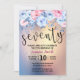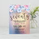 Snygg Modern 70:e födelsedagsinbjudan. Utformning av vattenfärgsbakgrund med guld glitter och blommigt inslag i rosa och blått.