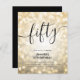 Elegant Glam Guld Glitter Ljus 50:e födelsedagsskriptinbjudan med mousserande ljus och modernt typografi.
