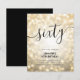 Elegant Glam Guld Glitter Ljus 60:e födelsedagsskriptinbjudan med mousserande ljus och modernt typografi.