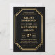 En inbjudan till ett glam-bröllop med en svart bakgrund och accentuerad med guld. På halvglans papper med ge är det en lätt skina.