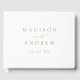 Gästboken i elegant bröllop med namn och bröllop-datum i guld med text på vit bakgrund. Anpassa ryggraden på den enkla gästen bok i bröllop med ditt gifta datum namn och bröllop.