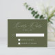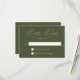Minimalistiskt, modernt bröllop OSA-kort med ditt OSA datum och anpassningsbarna godkänner/avvisar formuleringen. "Kinly Reply" visas i ett vitt kalligrafiskt skript med en solid oliv grönt bakgrund eller färg efter eget val. Designad att samordna med vår moderna elegance bröllop-samling.
