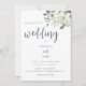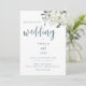 Modern Elegant Blåbröllopsinbjudan med vattenfärgade elfenbensblommor och grönska.